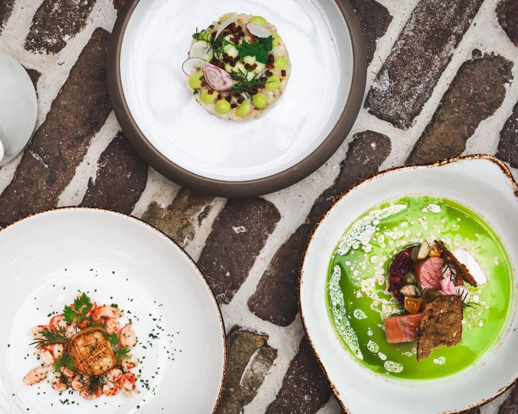 carpaccio, forel ceviche, charcuterie, champignons dordogne